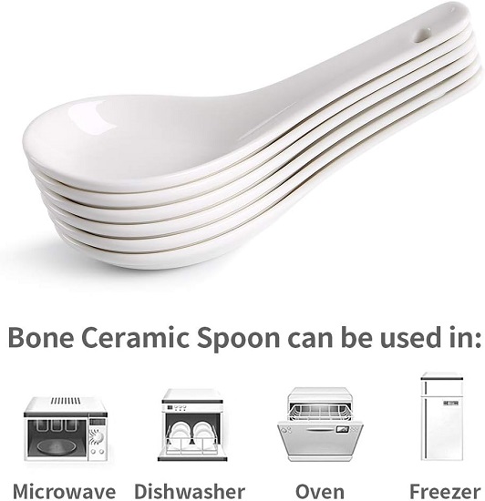 • Sturdy Food-Grade Ceramic: 12-Piece Ceramic Soup Spoons Set. Made of great bone ceramic, proper for Corelle Soup/Cereal Bowls. It can be safely used in the freezer, microwave and oven. Healthier than plastic, stainless steel, and wooden spoons.