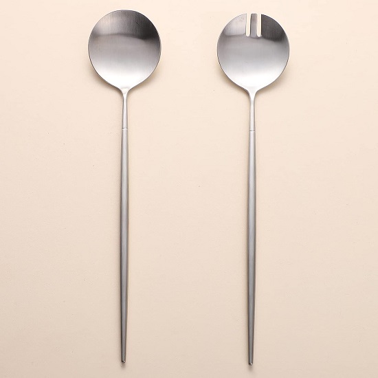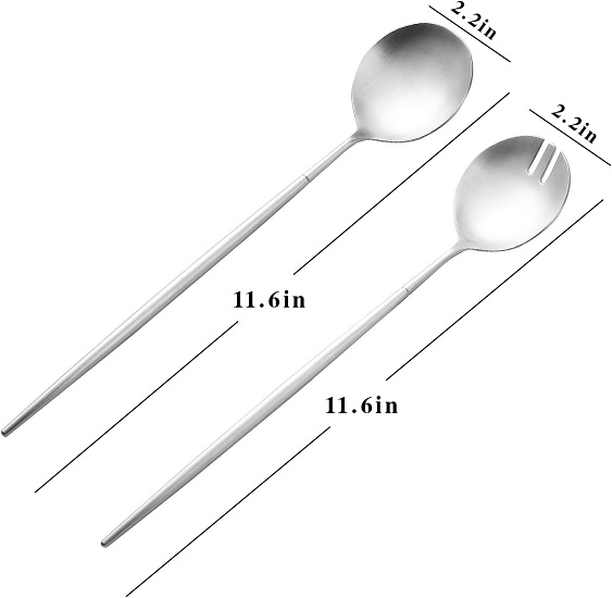 • 【Package Conrent】: 1 Piece 11.61" salad spoon, 1 pices 11.61" salad fork.