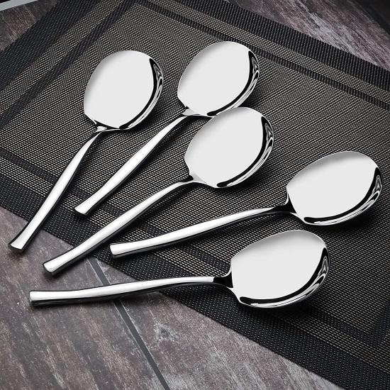 Pack of 8 stainless steel serving spoons.