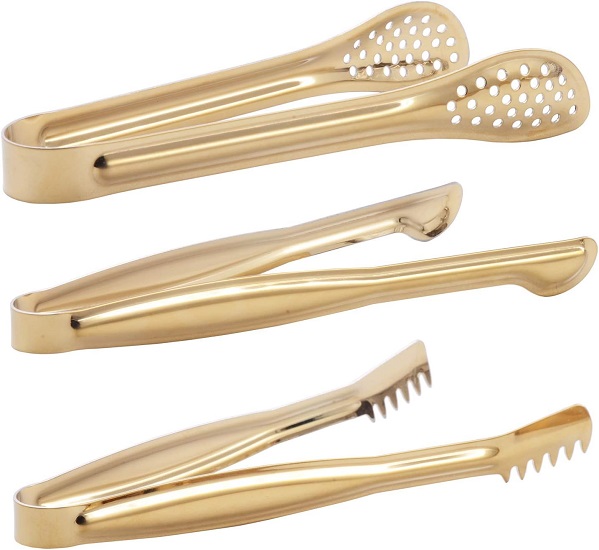 • 【PACKAGE CONTENT】6 pieces different shapes 6-Inch serving tongs (Gold).