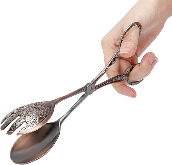Stainless Steel Food Serving Small Tongs,Kitchen Utensils Multi Functional Clamp Non Slip Cooking Baking Bread Food Clip,Vintage Metal Food Tong (Red Copper Plating)