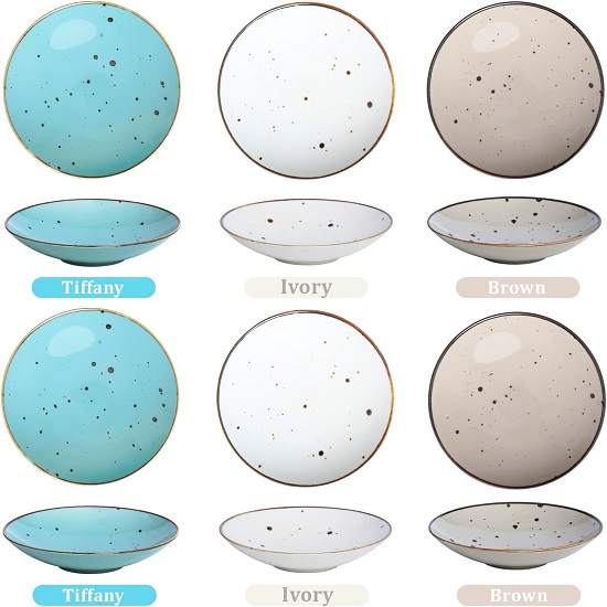8.1" Ceramic Pasta Bowl, 26 oz Salad Bowl, Microwave and Dishwasher Safe, Sturdy and Stackable, 6-Piece Ceramic Dish and Plate Set