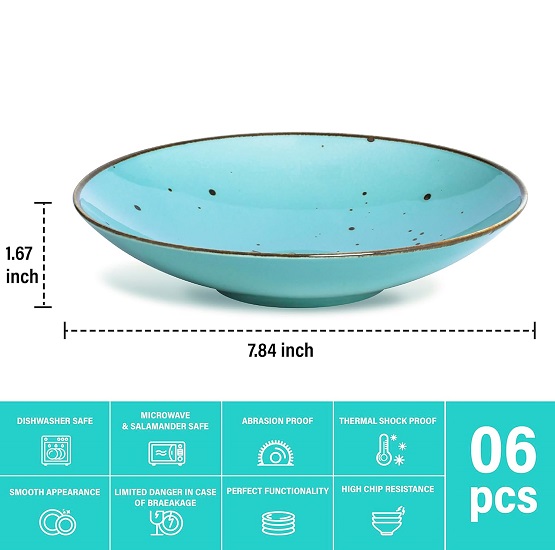 • Pasta Bowls Set of 6: pasta bowls come with 8.1", 26 Oz, 2" depth. Perfect as pasta serving bowls, suitable for pasta, spaghetti, dinner salad, soups, morning cereal, stir-fries, seafood, main meal, rice, or broccoli. Large enough to never worry about spillage.
