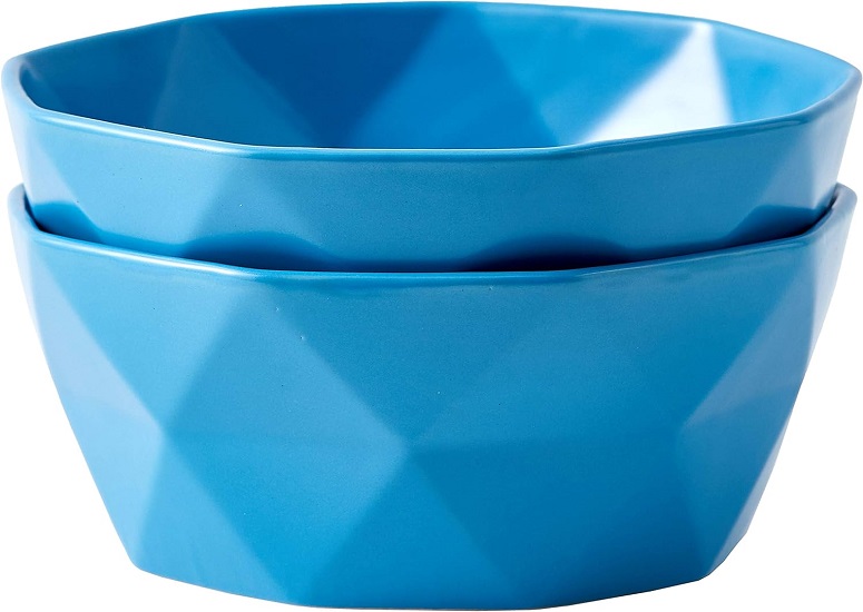Geometric Ceramic Soup Bowl Set of 2, 60 Ounce Large Blue Ceramic French Onion Soup Crocks For Kitchen Dinner Table Decoration